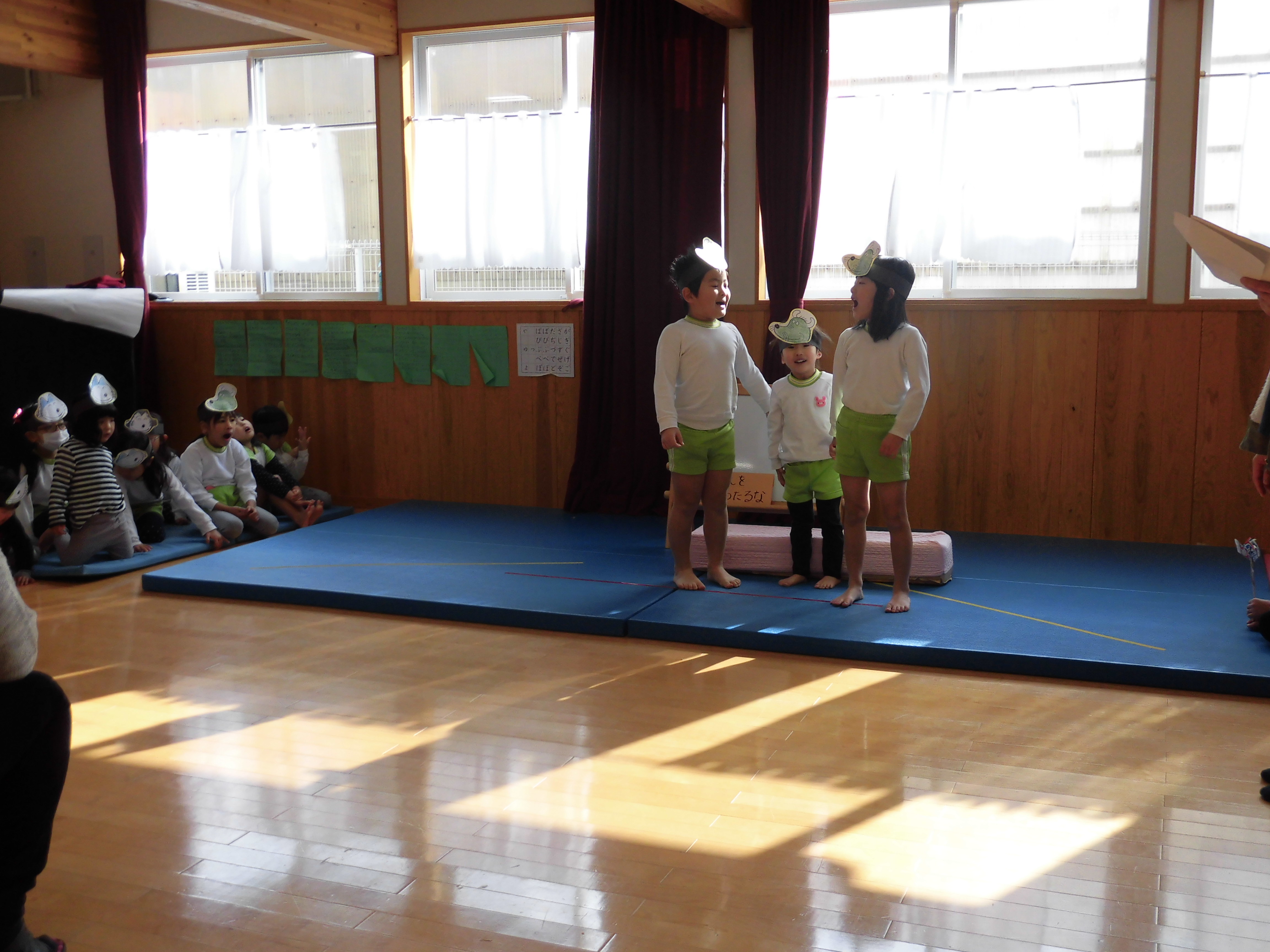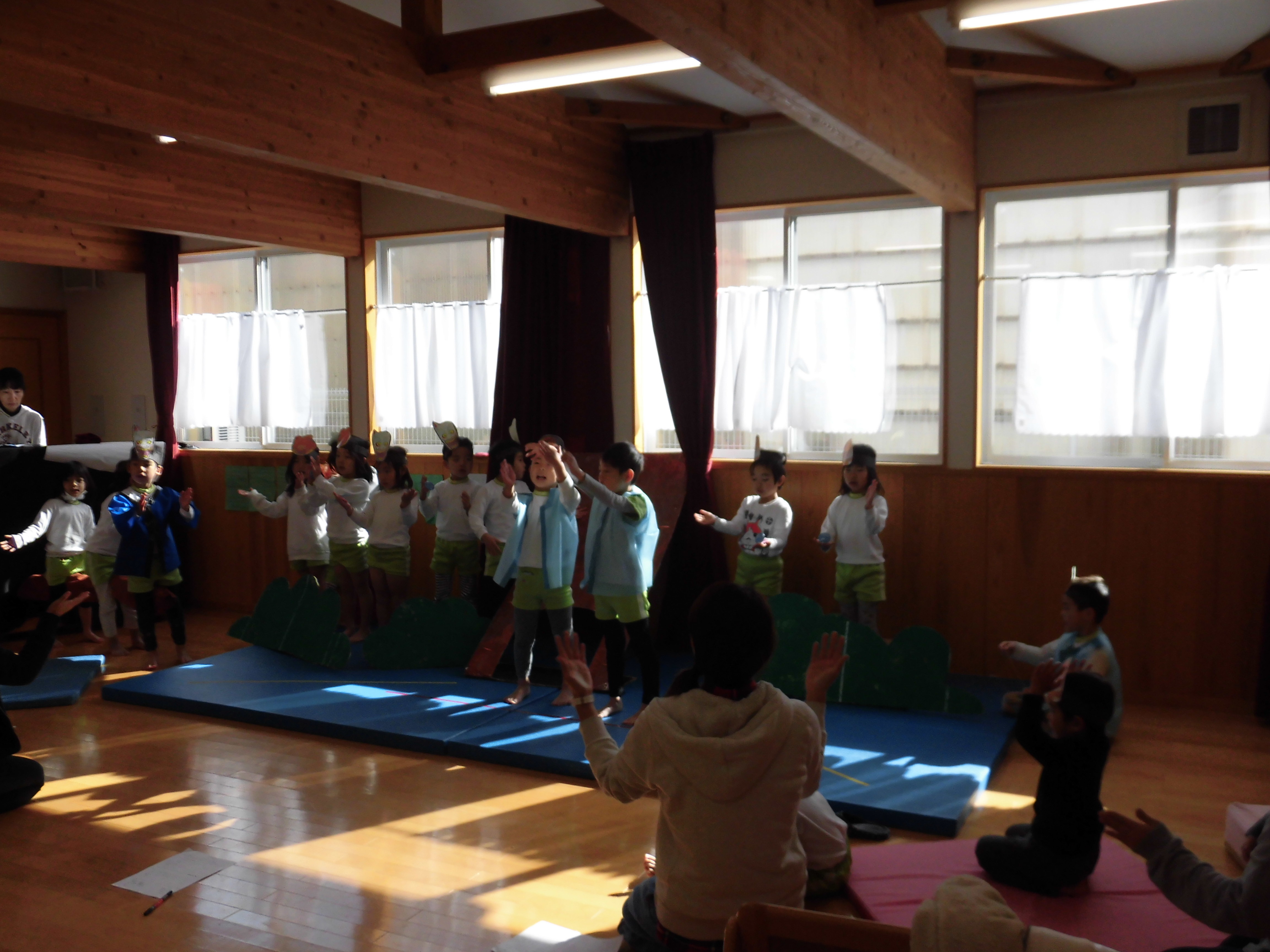 いつも一緒に過ごす異年齢クラスで劇遊びが始まりました。2歳児~5歳児の縦割りクラス。こうしたい!思いがいっぱいの2歳児。なかなか思うようにいかないので大きい子どもたちは、やまももぐみのみんなにちょっと苦戦中です![]()