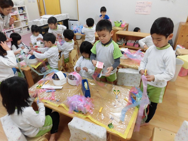 自分たちの衣装を作ってあそびの世界に・・・今日も遊戯室からは楽しそうな歌声とセリフが聞こえてきます。