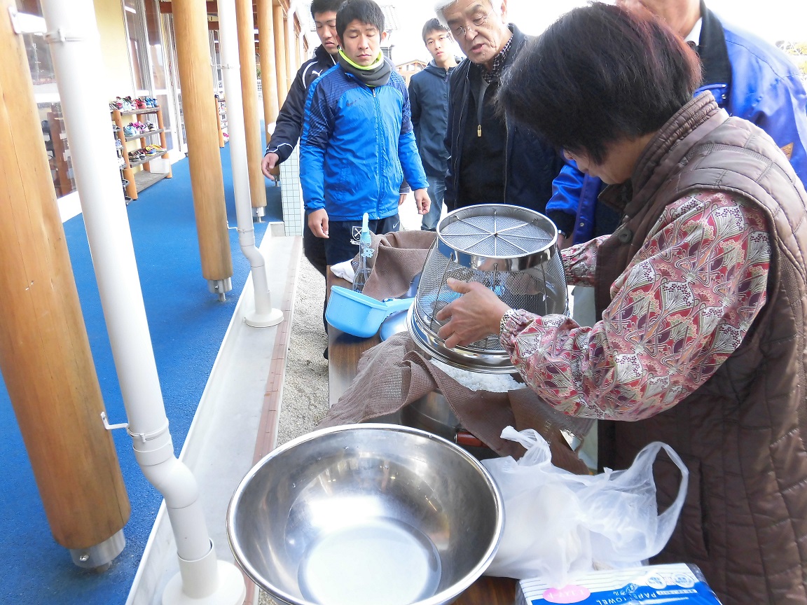 準備から・・・私たちも教えていただきながら餅つきが始まりました。