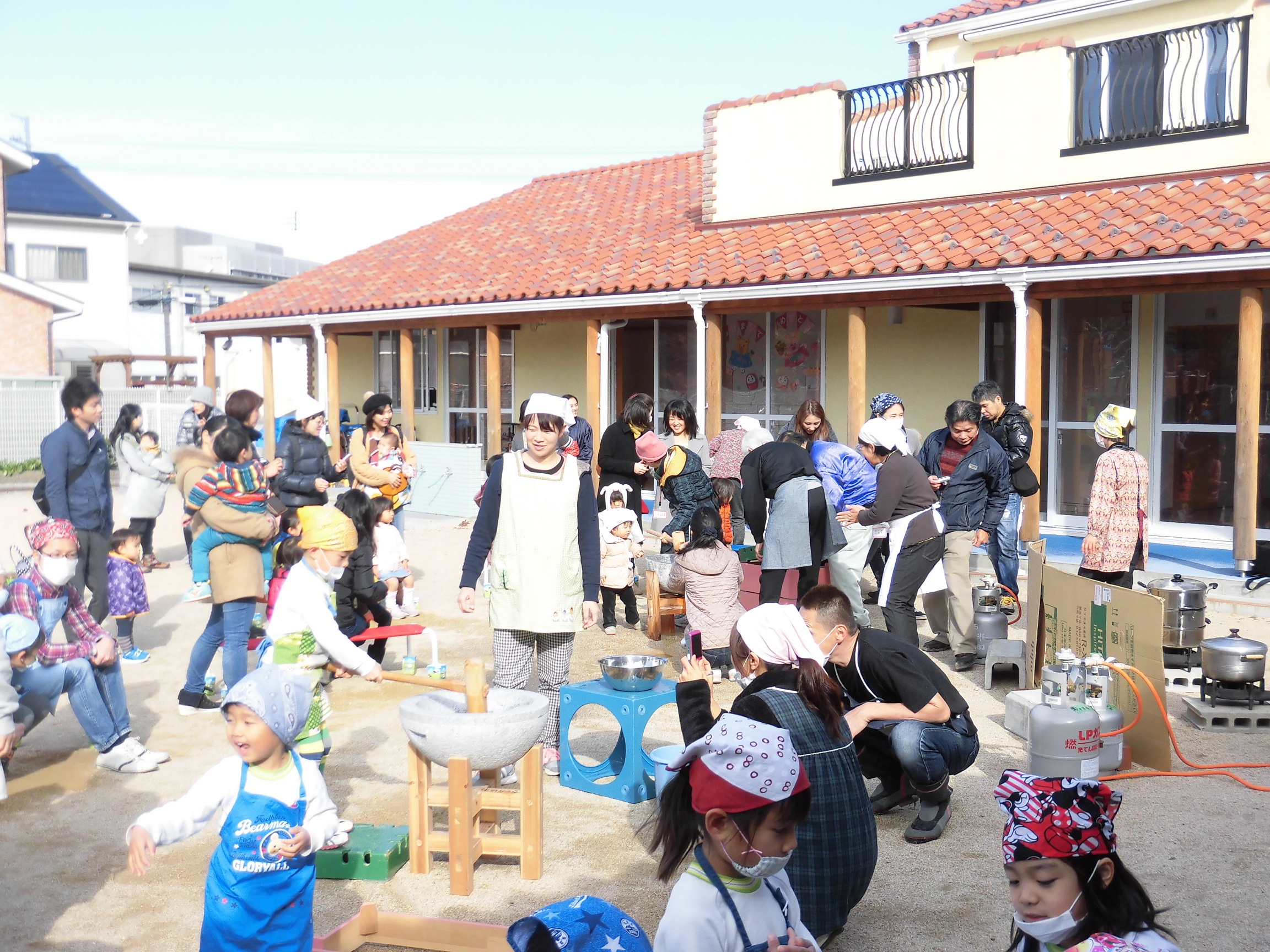 今日はお父さんの参加もあり賑やかな園庭。子どもたちの「ヨイショッ」の声が響きました