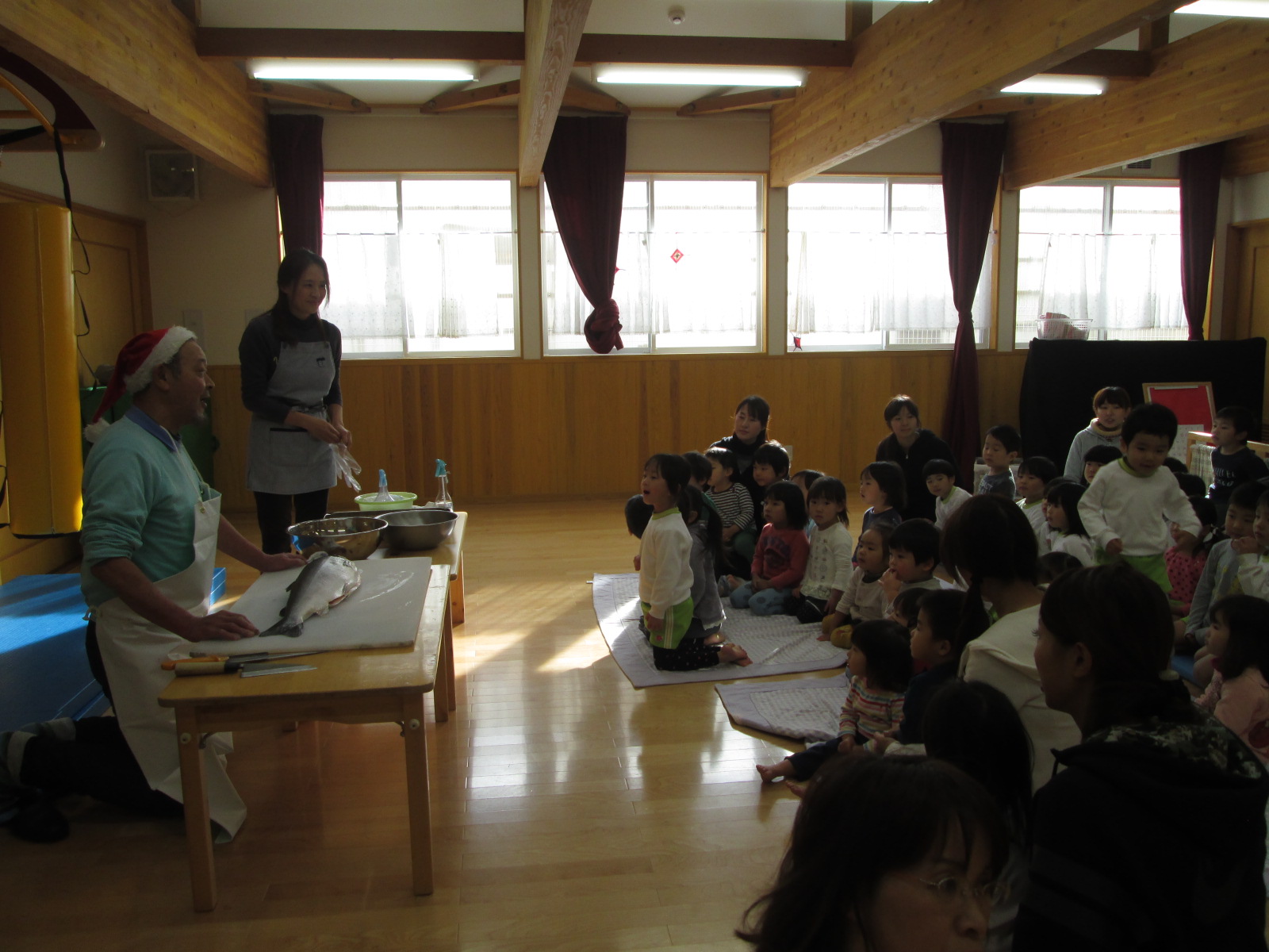 実際前でお魚が捌かれていくと「かわいそう・・・」という声。