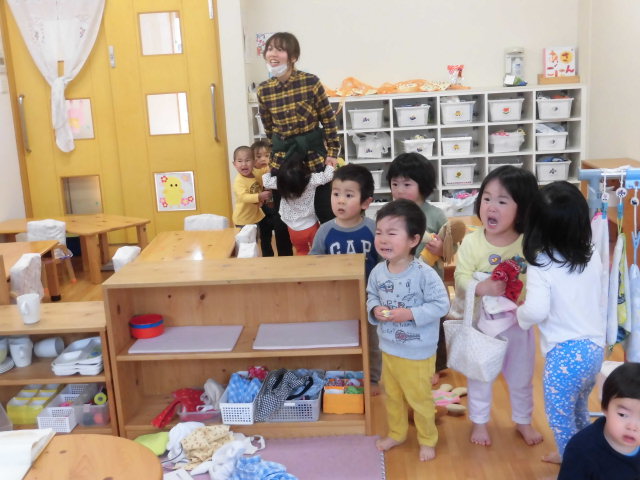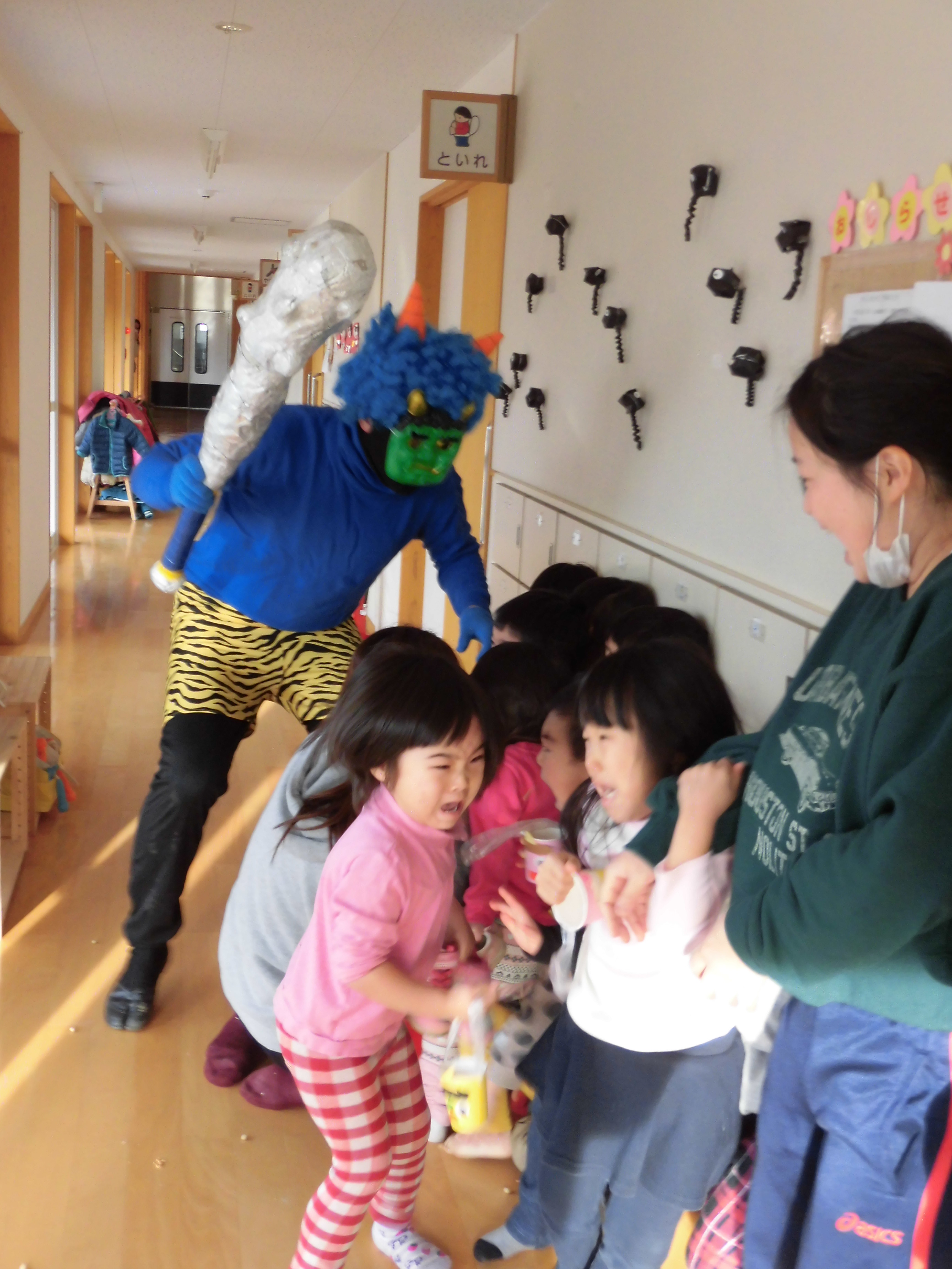 小さいお友だちのお部屋にもやってきた鬼さん。怖かったね。。