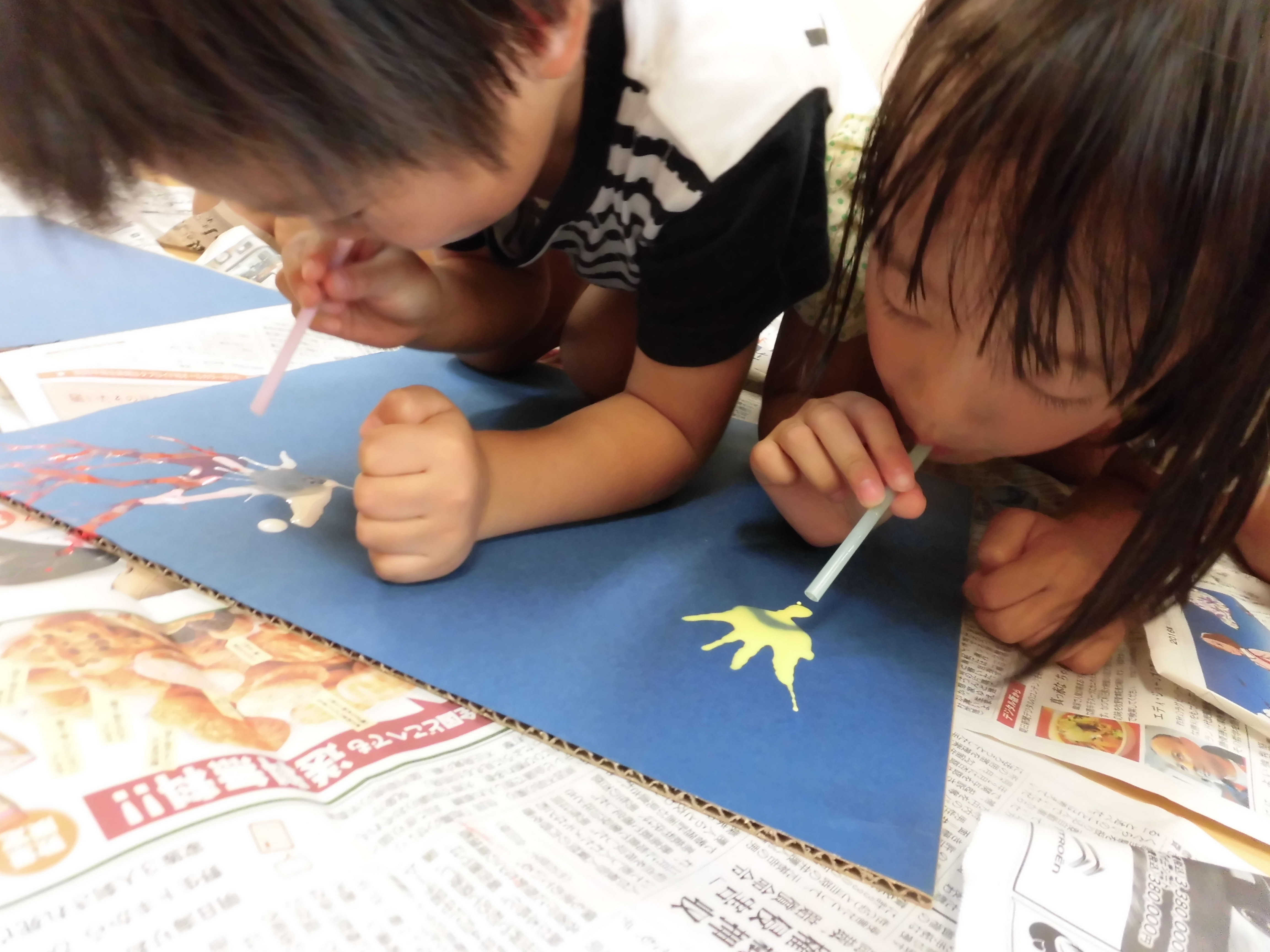 吹き絵(4歳児)おみこしにつくんだ!花火みたい