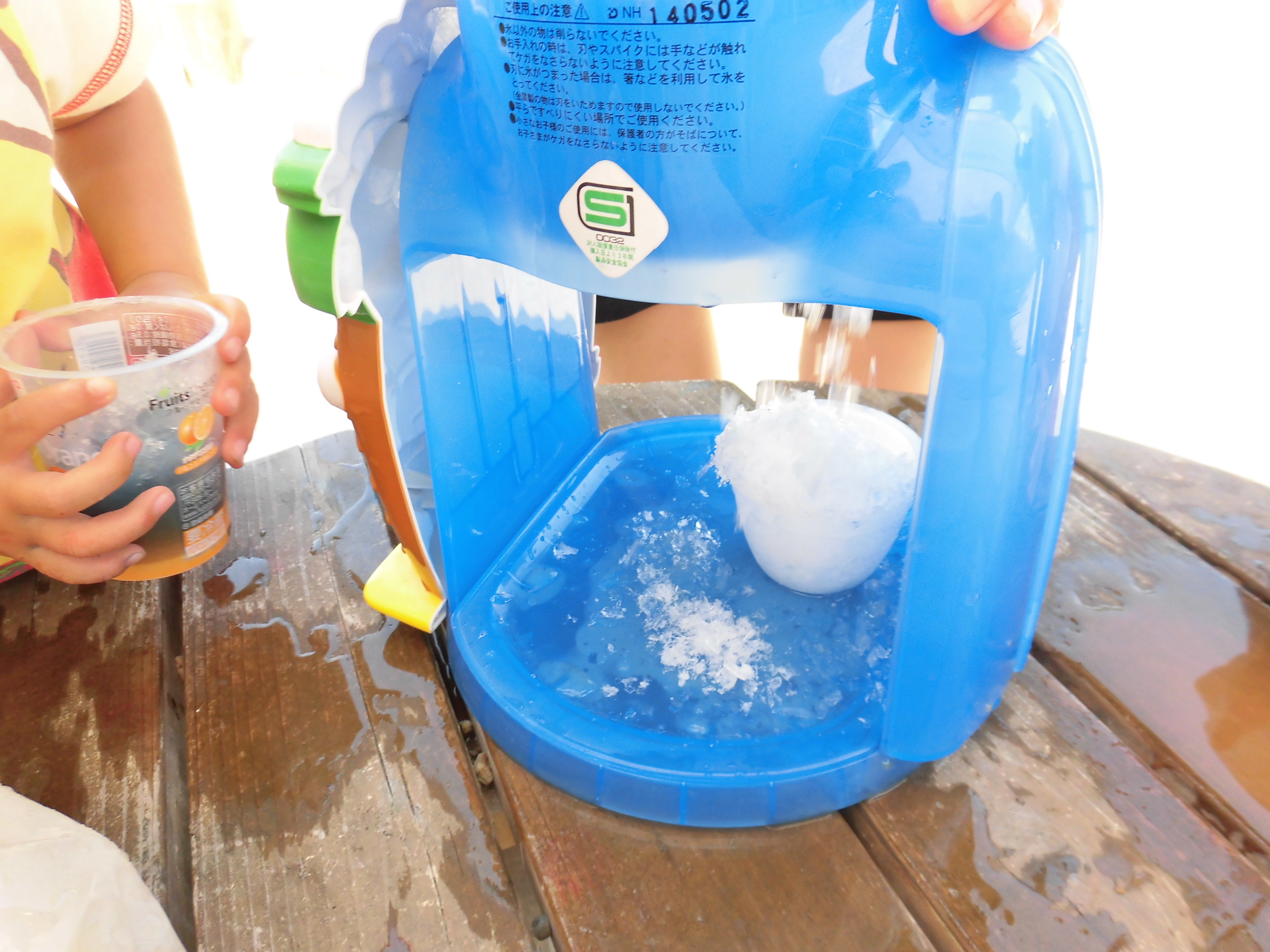 今日は色水使ってぼくたち私たちがかき氷やさん!