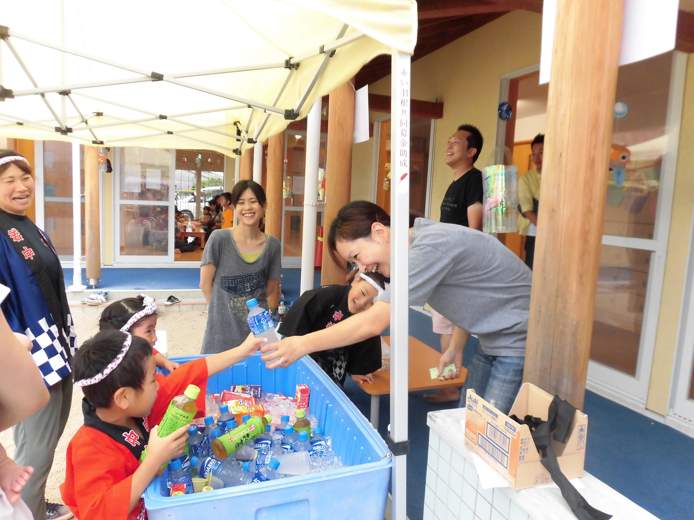 模擬店では5歳児いちょうぐみの子どもたちもはっぴを着てお店やさんとなってくれました。