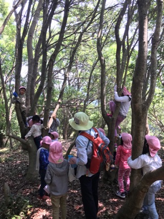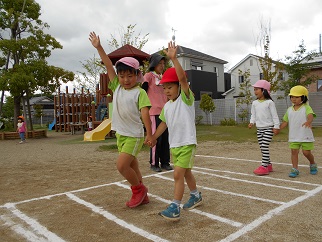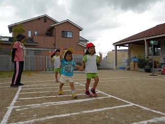 5歳児いちょう組は、3、4歳児のお友だちと手をつないでとリードしてあげるたのもしい姿も見られました。年下のお友だちもお兄ちゃんお姉ちゃんが手をつないでくれると、ホッと表情が和らぎます。縦割りクラスで過ごす中でお兄ちゃん、お姉ちゃんが安心する存在になっていくのですね。