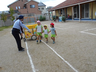 今日は草津市のわかばチームの方に来ていただき、交通安全教室に参加しました。