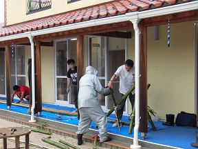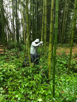 「節は少し残した方がいいね。きれいにとってしまうととそうめんが速く流れて子どもたちが取りにくいから・・・」と話しあいながら作って下さる男性陣。大人たちも昨年の教訓が今年につながります。