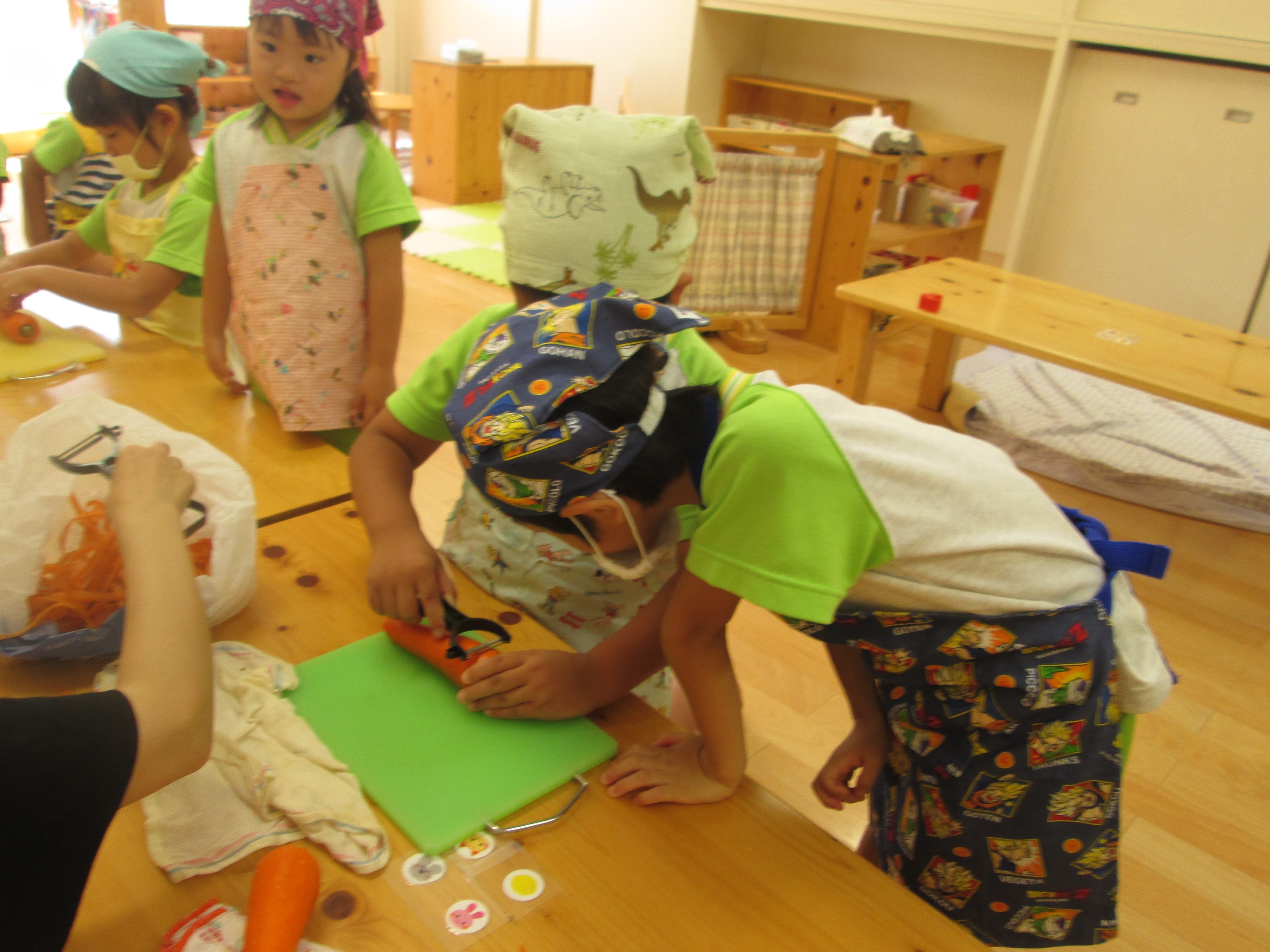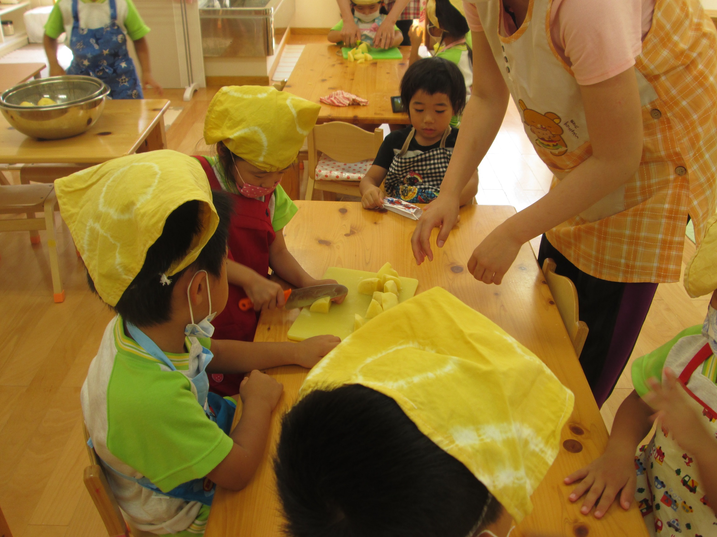 先日収獲したじゃがいもを入れてカレー作りをしました。野菜の皮むき・そして野菜切りにチャレンジです!