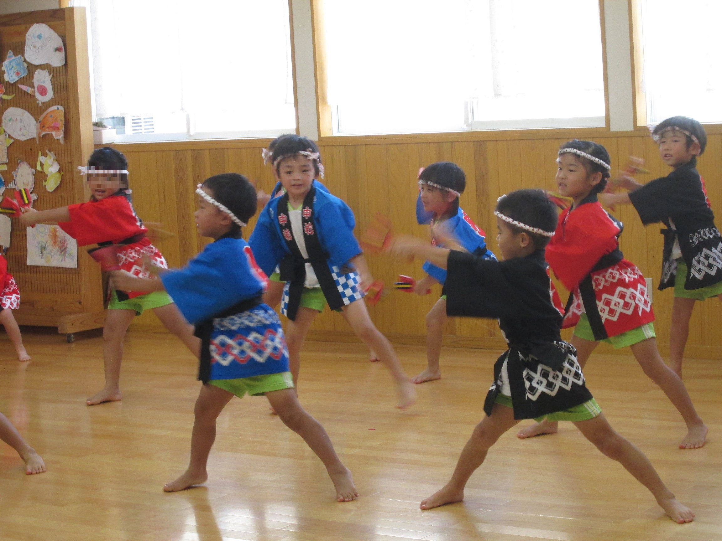 遊戯室で行われた3~5歳児の「ソーラン節」
