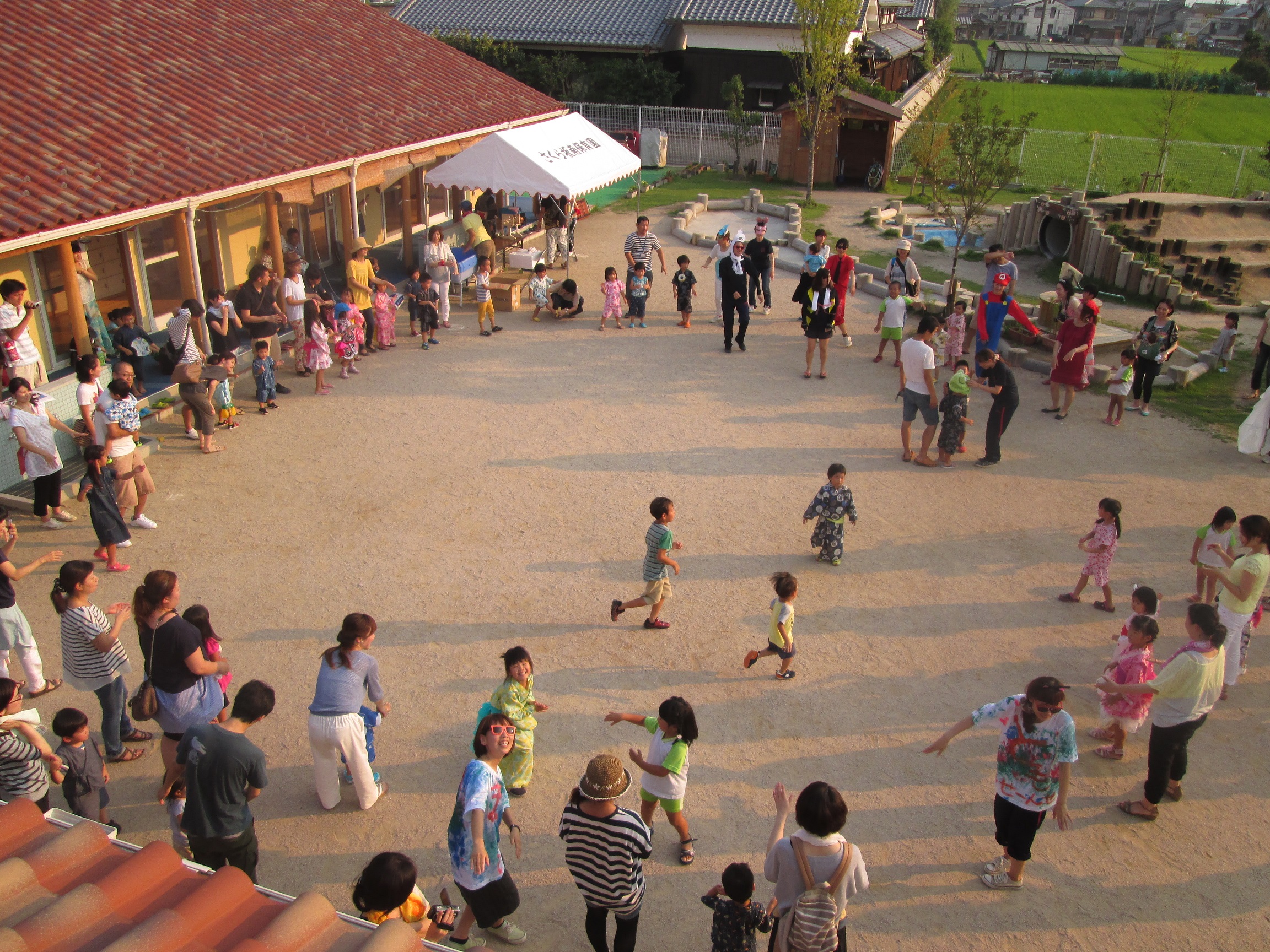 最後は園庭で盆踊りでしめくくりました。あっという間のなつまつりでしたが、とても楽しい時間となりました。とても暑い日になりましたが、保護者の皆さまには準備・片づけなどご協力ありがとうございました。
