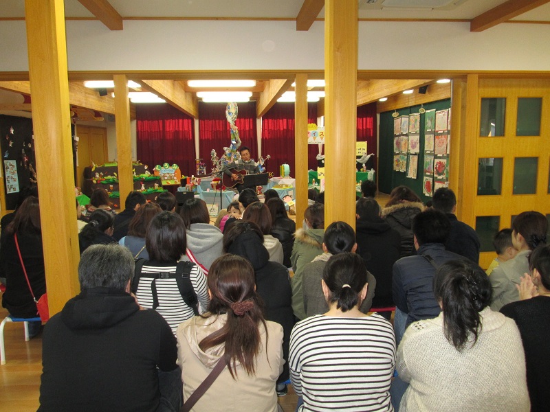 はじめは講師を招いての人権研修。先生の優しい歌声とギターで心がほっとしました