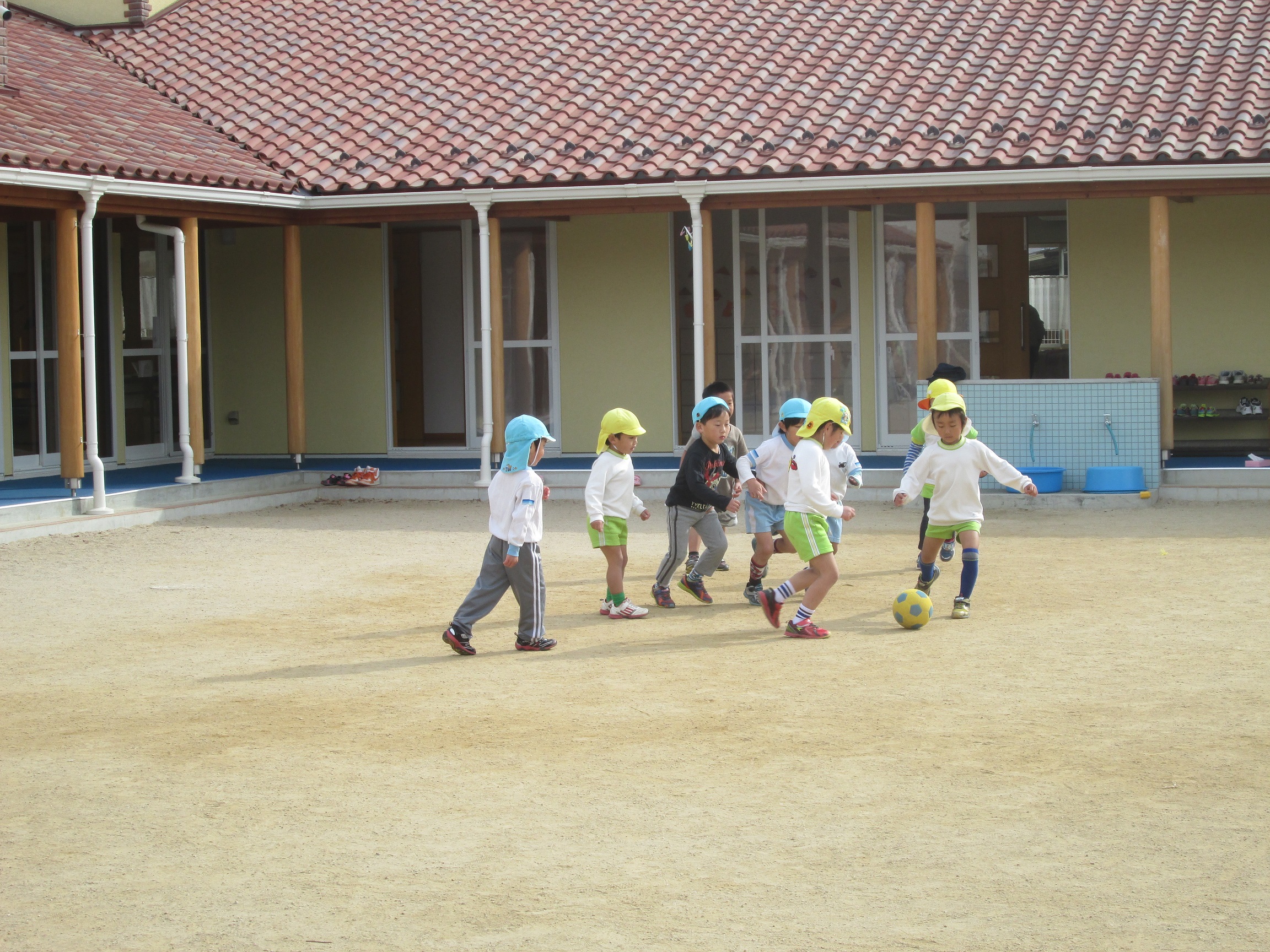 朝から本園の5歳児くわがたぐみのみんながあそびに来てくれるということで嬉しくてたまりません。一緒に自然に交わり大人数でのサッカーは嬉しくてたまらない!!生き生きとした表情の子どもたちでした