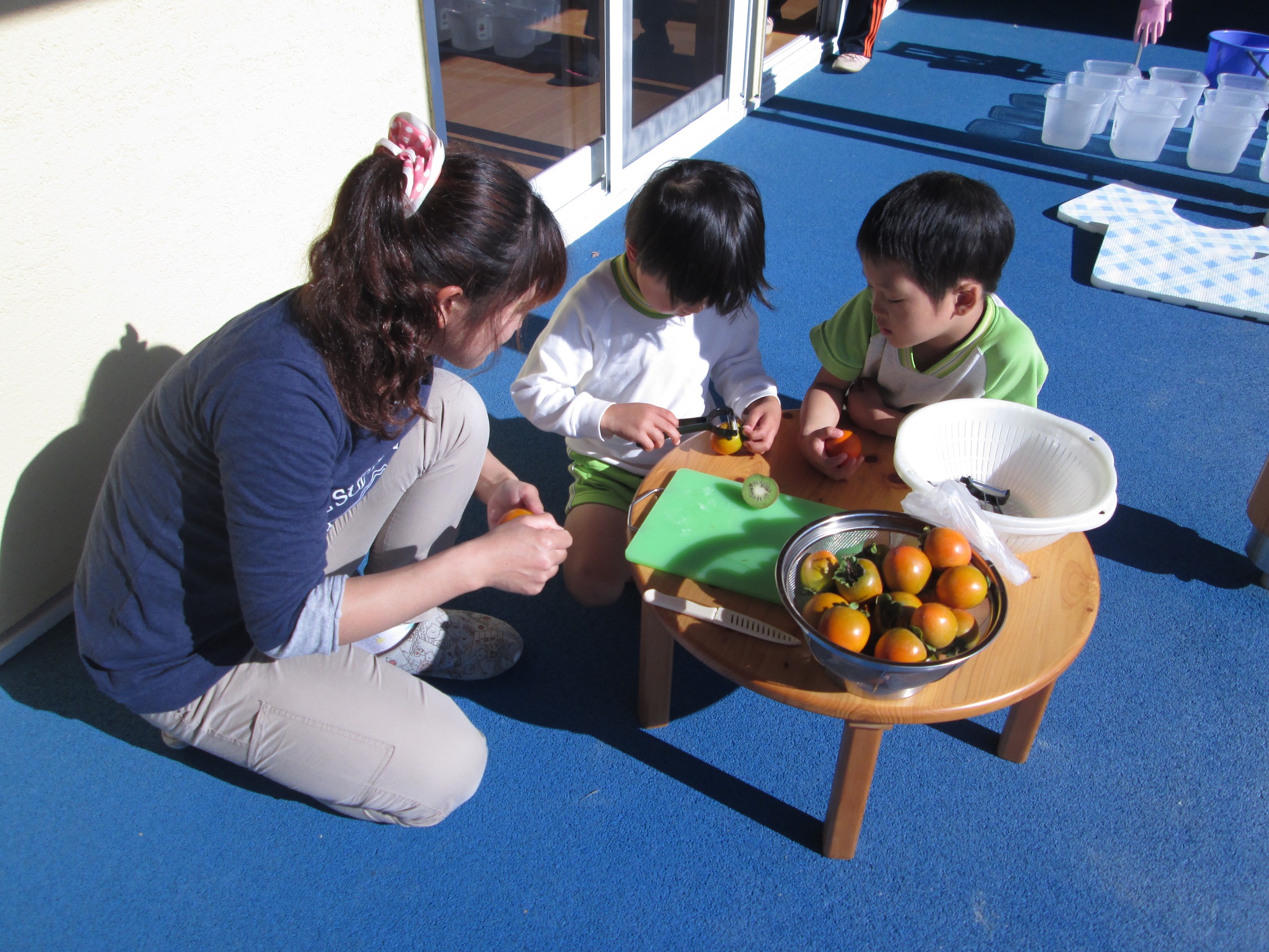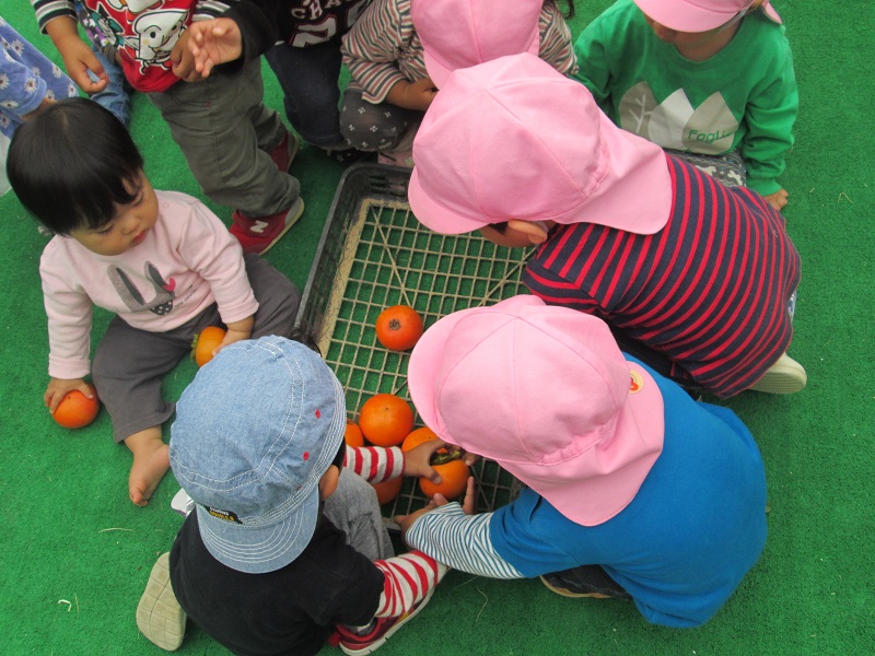 収獲させていただいた柿は午後から5歳児と一緒に一口お味見・・
