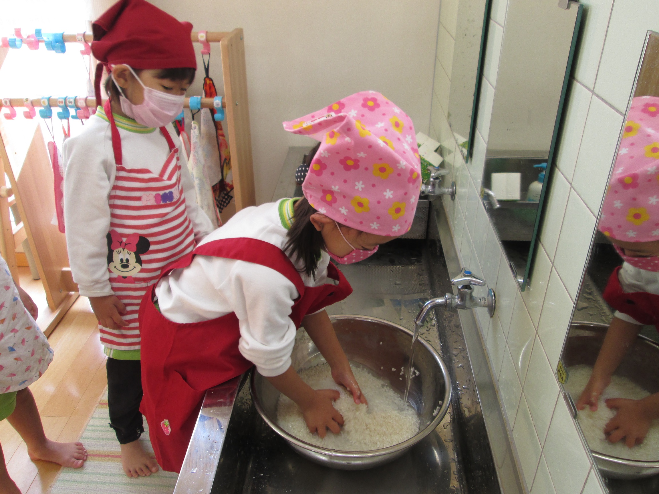 さて・・・・3歳児くるみぐみはお米を研ぎをしました