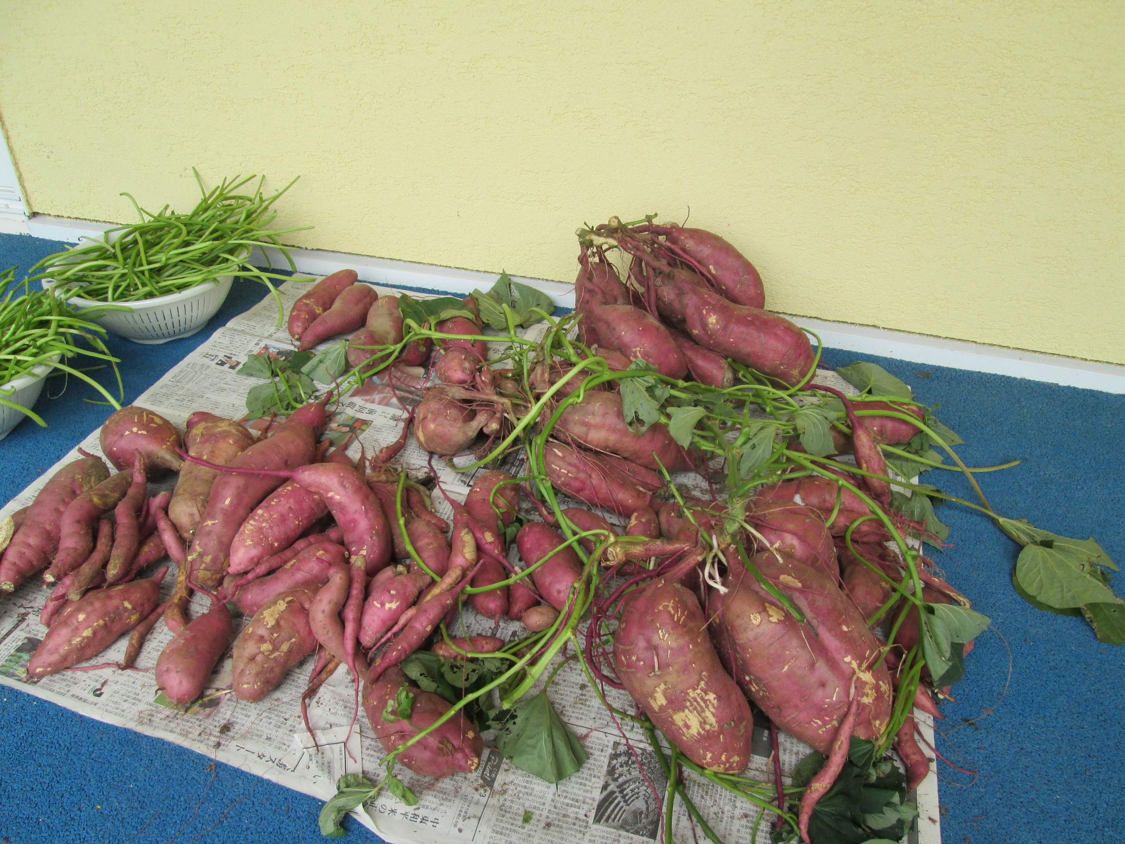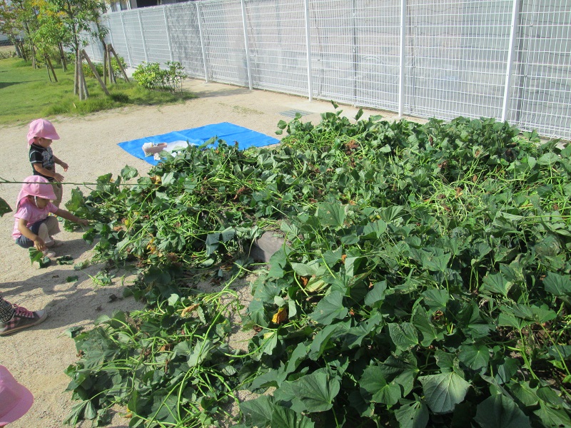 芋のツルがなが~く伸び園庭にまでドンドン伸びてきた芋のツル…