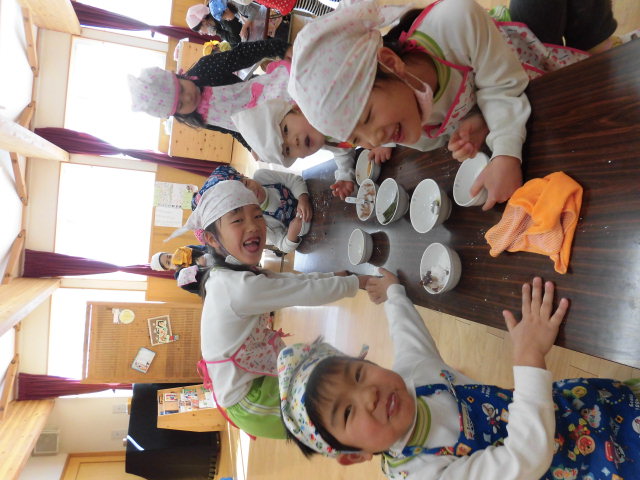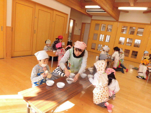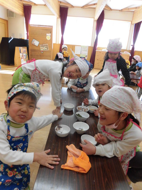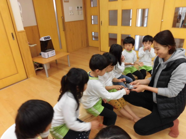 お部屋に戻ってからは、年の数プラス1つ豆を食べて、みんなの心の中にいる「いやいや鬼」や「泣き虫鬼」「おこりんぼ鬼」をやっつけました。