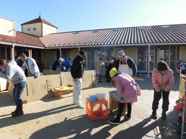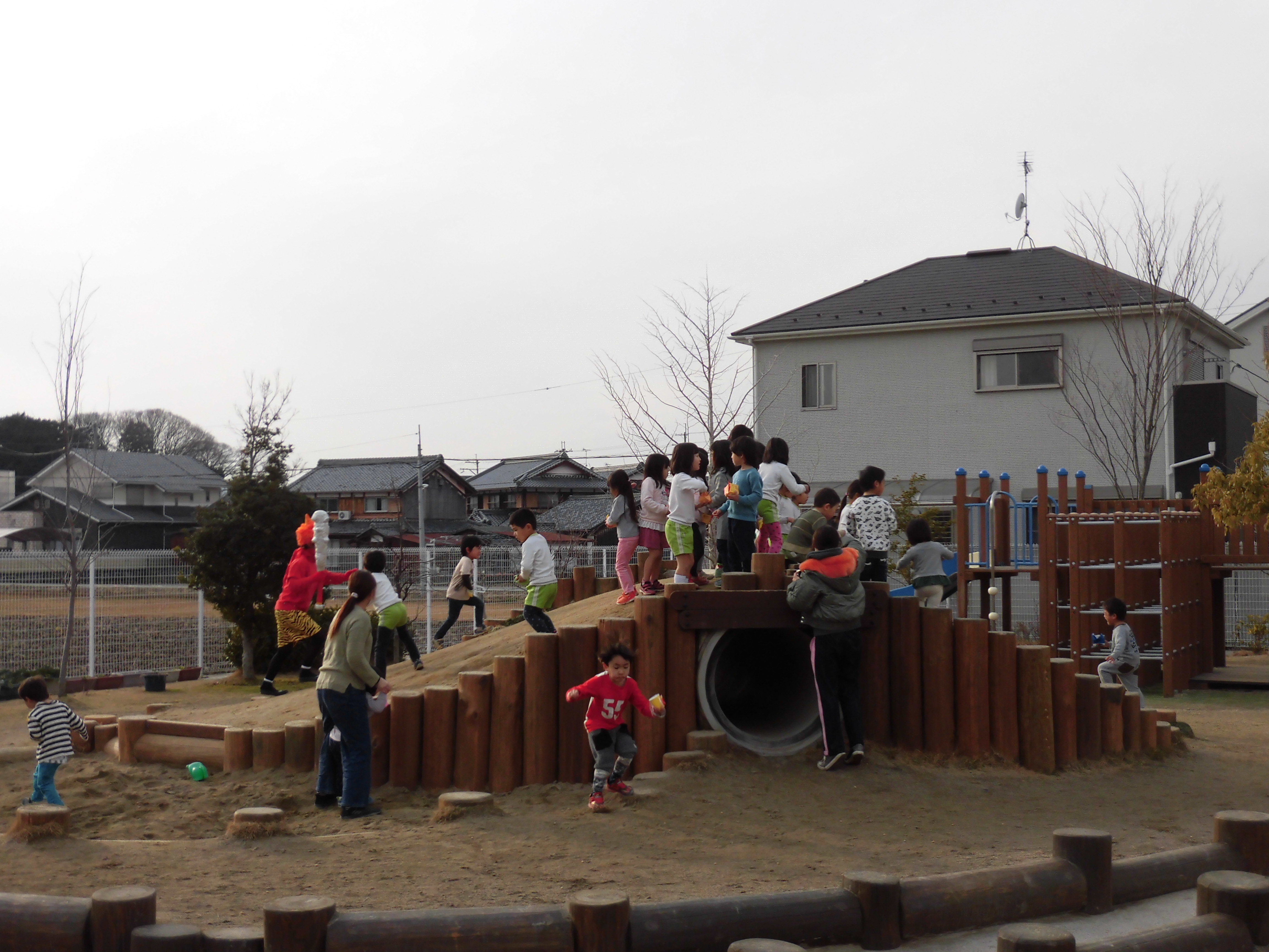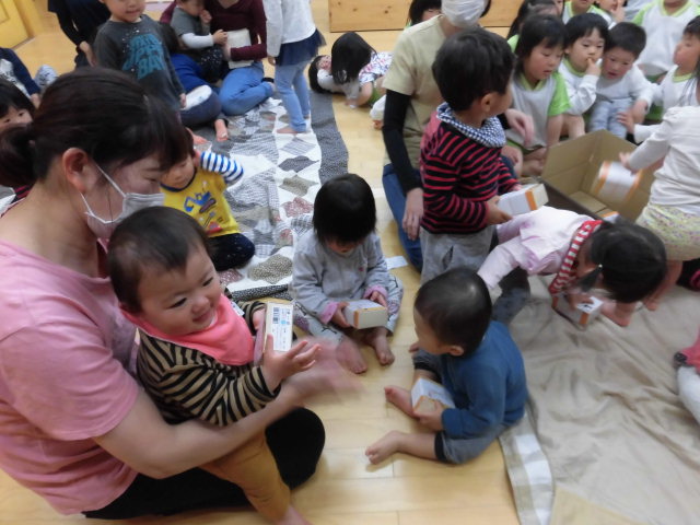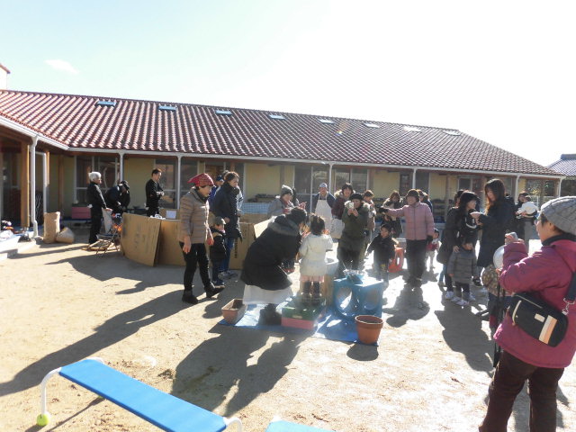 今日は昨年に引き続き、矢橋の子育てサロンの親子の方々も参加してくださり、一層園庭には楽しい声が響いていました。風の強い寒い日でしたが、人と人が集うということは、とても心が温まりますね。