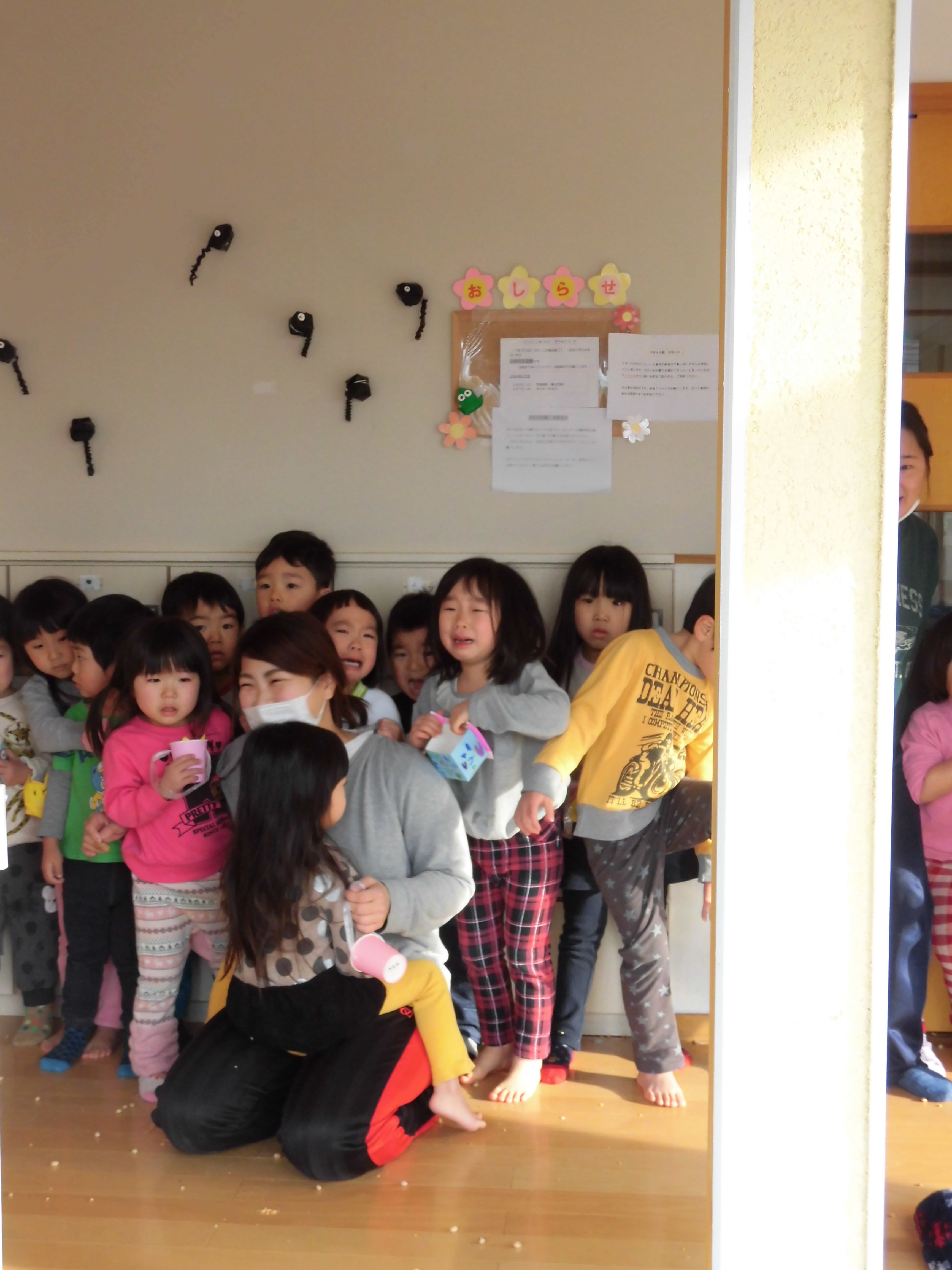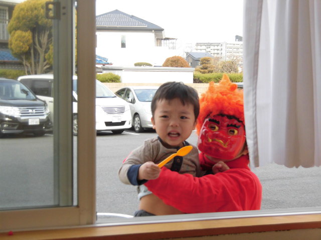 小さいお友だちのお部屋にもやってきた鬼さん。怖かったね。。