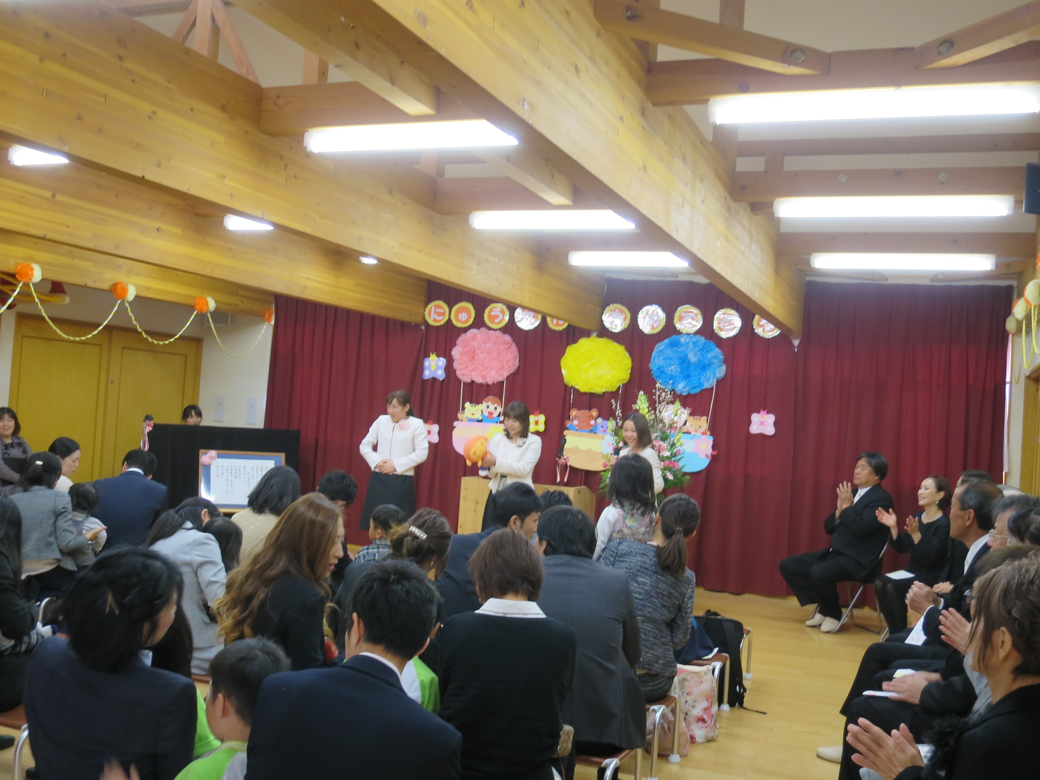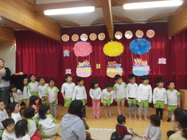 入園式では保育園で楽しんでいる手遊びを紹介させてもらい、先生たちと一緒に楽しみました。また、新いちょう組の子どもたちはご挨拶をしたり、お歌をプレゼントしたり、、、年長児としての最初の大仕事を立派に務めてくれましたよ。
