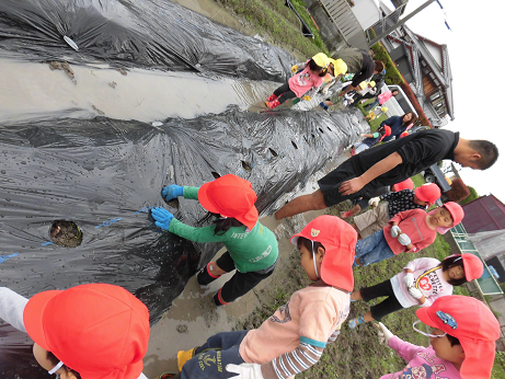 畑の道はとってもぬかるんでいて歩きにくく、足が抜けなくなるお友達も多数!!