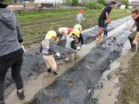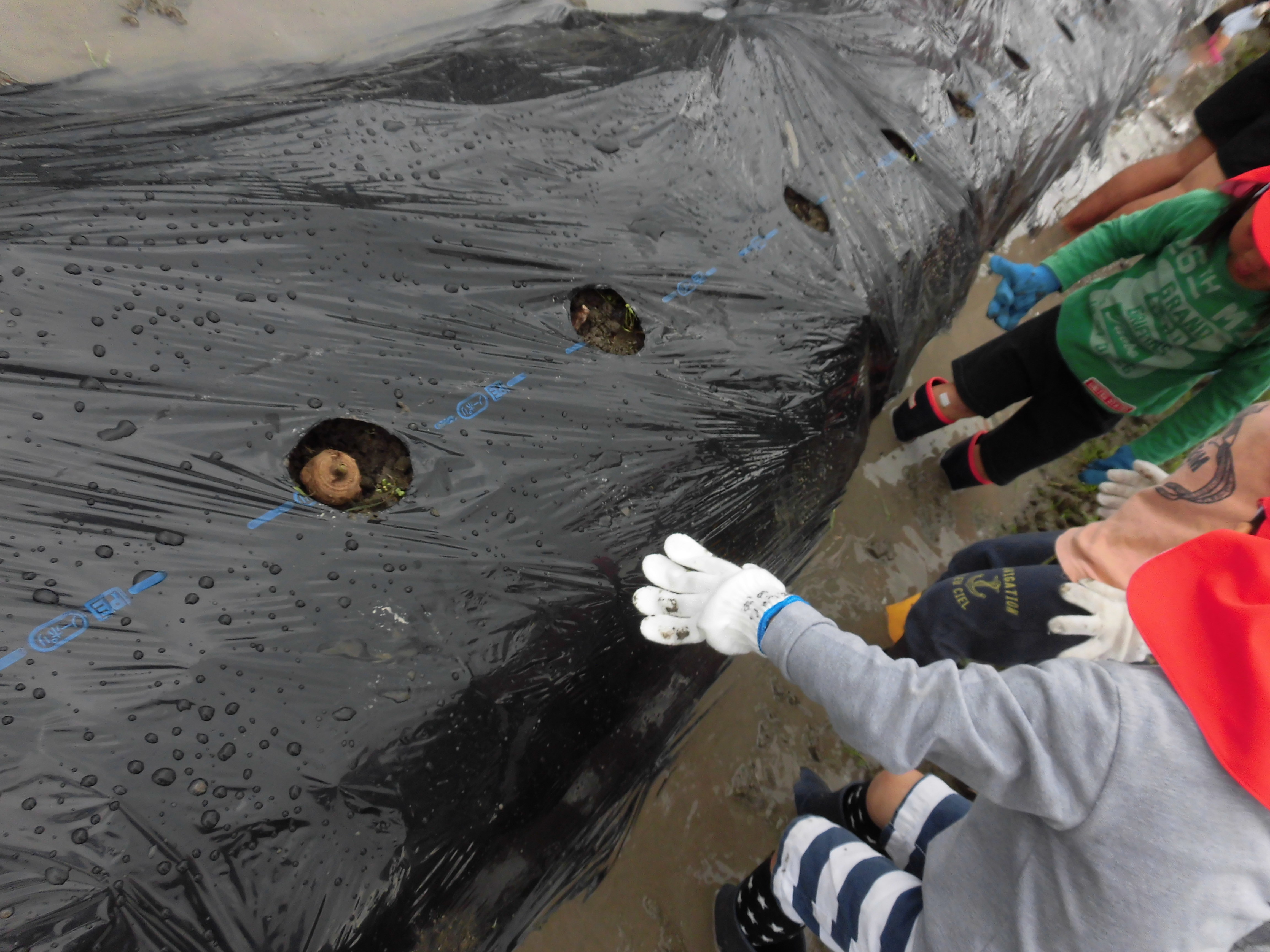 今日植えた種イモが親芋になり、子どもや孫のお芋さんが出来る予定!