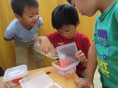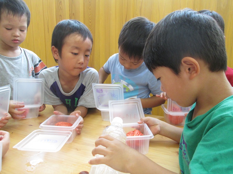 せっかくだから・・・と保育園に戻ってみんなで中の実を取り出しジュースをつくりました。
