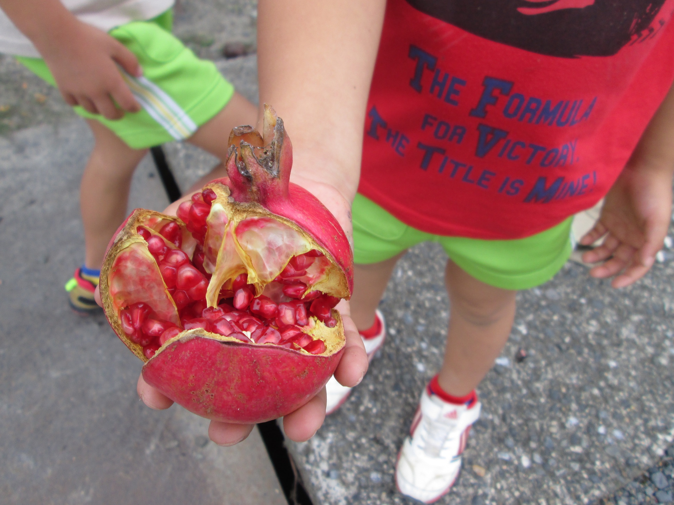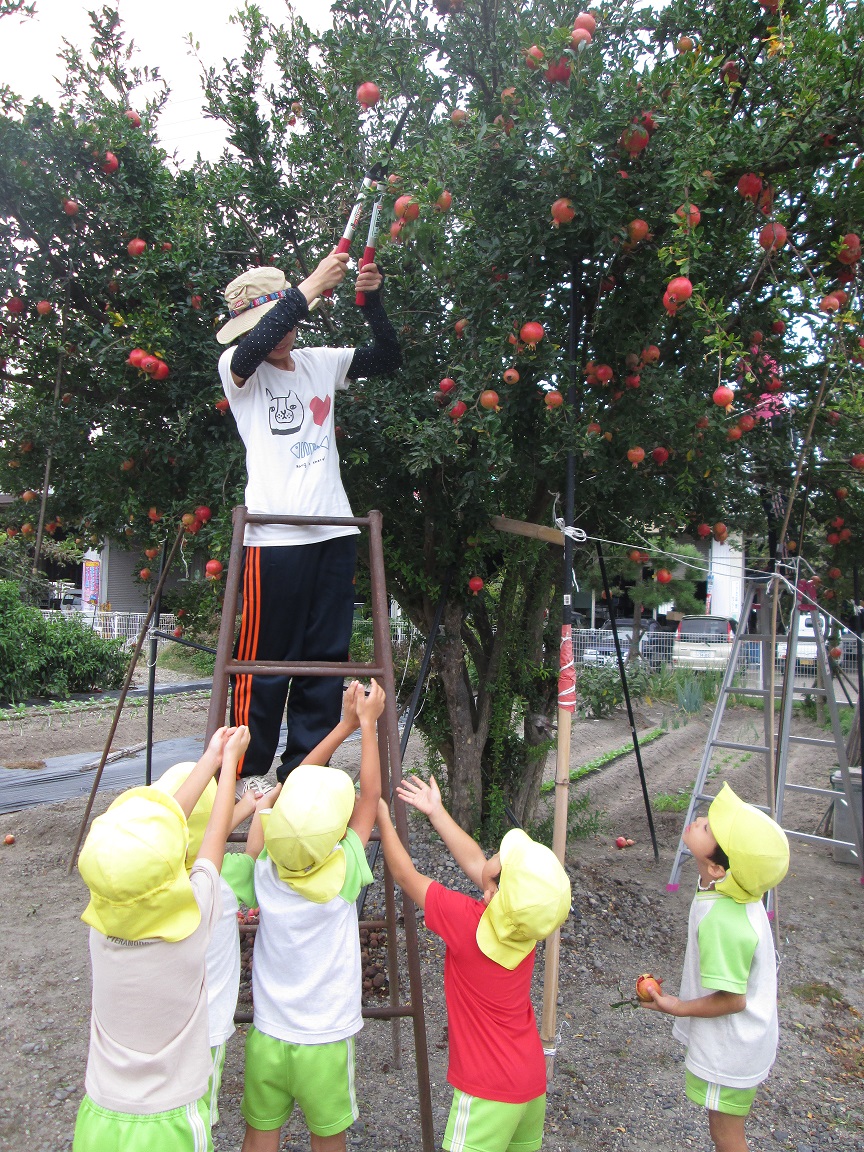 毎年この季節になると、地域の方が「そろそろだよ!」と誘いに来て下さいます。そこに実っているのは・・・”ざくろ”です。