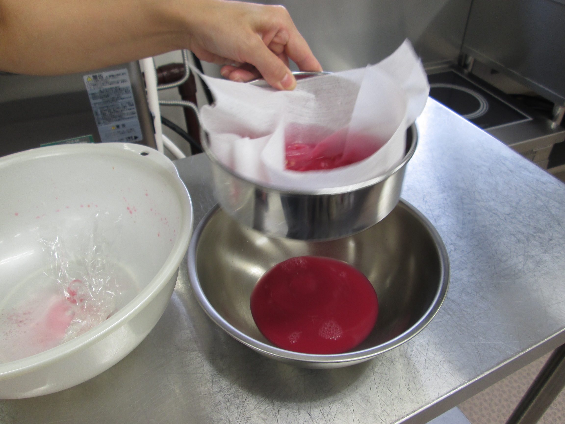 ジュース裏ごし・・・そして給食の先生が魔法のおやつに変えてくれました。